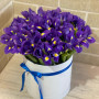 45 фиолетовых ирисов в шляпной коробке в Белорецке