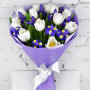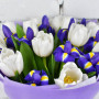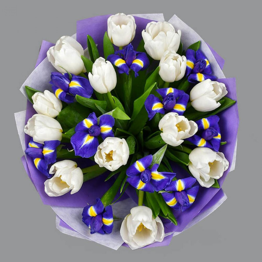 Букет из синих ирисов и белых тюльпанов в Белорецке