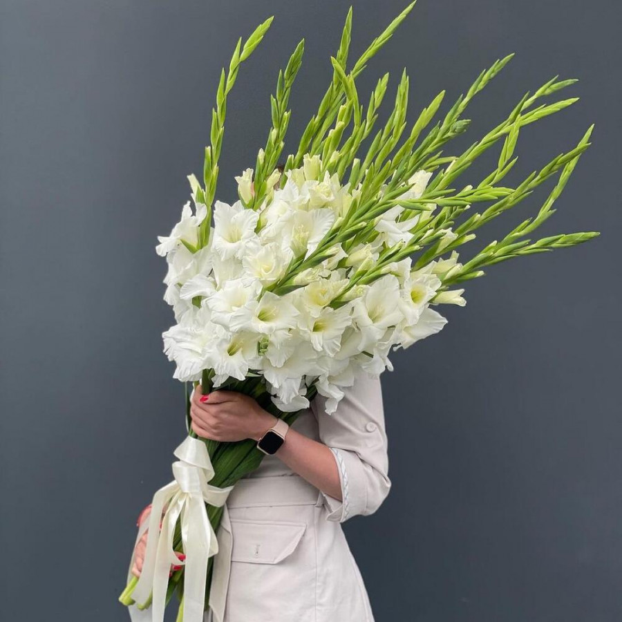 Букет из 19 белых гладиолусов под ленту в Белорецке