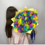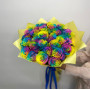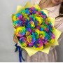 На фото букет из 25 радужных роз. В составе: роза 25 шт, крафт-бумага 1 шт, атласная лента 1 шт, . Все цветы свежие и ароматные, букет красиво оформлен и отлично подходит для подарка. Доступна доставка цветов или самовывоз.