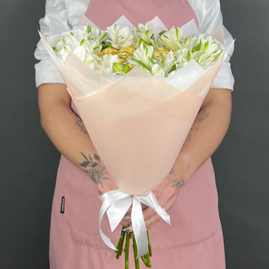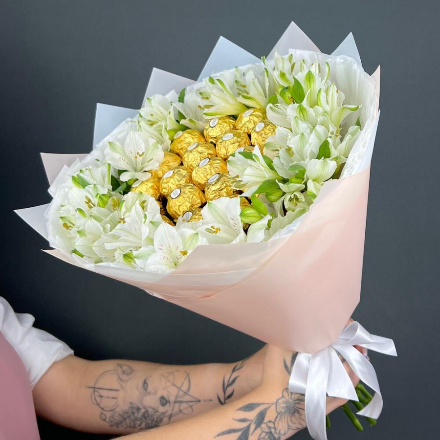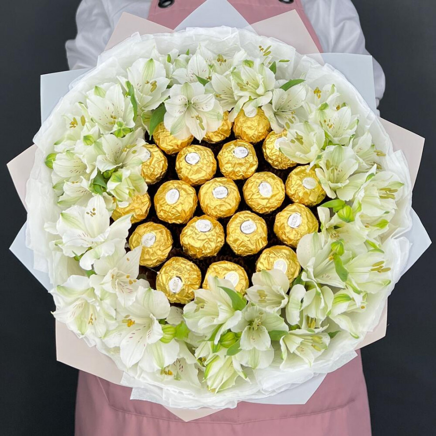 Букет из конфет Ferrero Rocher и и альстромерии в Белорецке