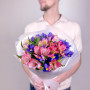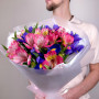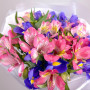 Букет из синих ирисов из розовых альстромерий в Белорецке